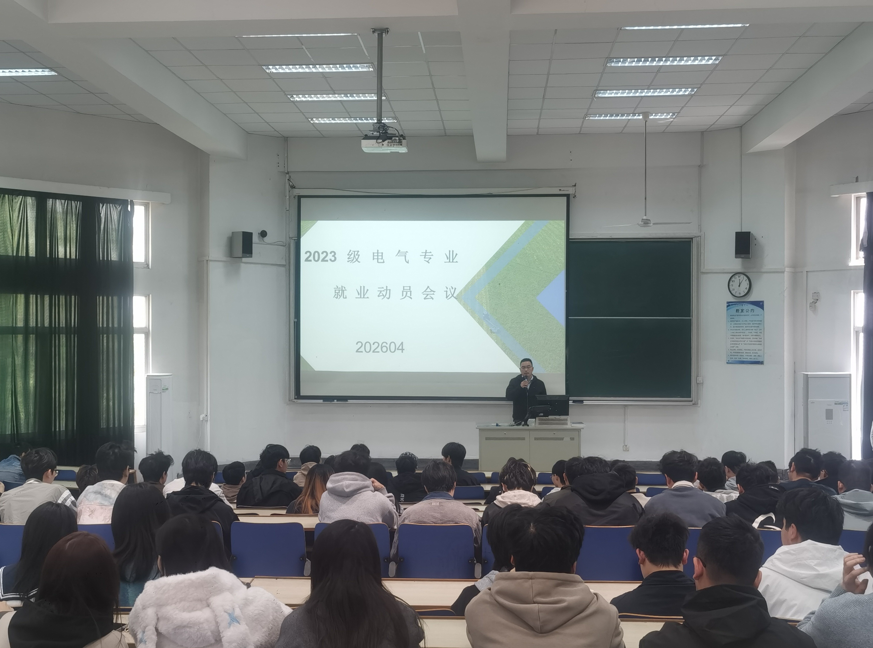 2026年4月8日,机械与电气工程学院在文昌院114、103分别召开2027届电气类、机械类专业毕业生就业动员会。学院党总支副书记羊栋出席会议并讲话,辅导员王业赞、缪烨明分别主持会议。